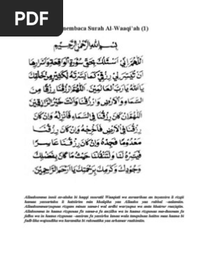 Surat al waqiah yang artinya hari kiamat memiliki 96 ayat, termasuk golongan surat makkiyah (diwahyukan di mekah). Surat al waqiah berarti 'hari kiamat' karena dalam kandungan ayatnya banyak peringatan mengenai hari besar yang akan terjadi kelak dimana sekarang. Yaa allah sesungguhnya aku memohon kepadamu dengan kebenaran. Doa usai baca surat al waqiah. These files are related to doa surat al waqiah.